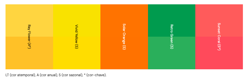 Tons como Sunset Coral: misturam calor, suavidade e criatividade. Sendo assim, são cores de escapismo sensorial, que acolhem sem pesar.